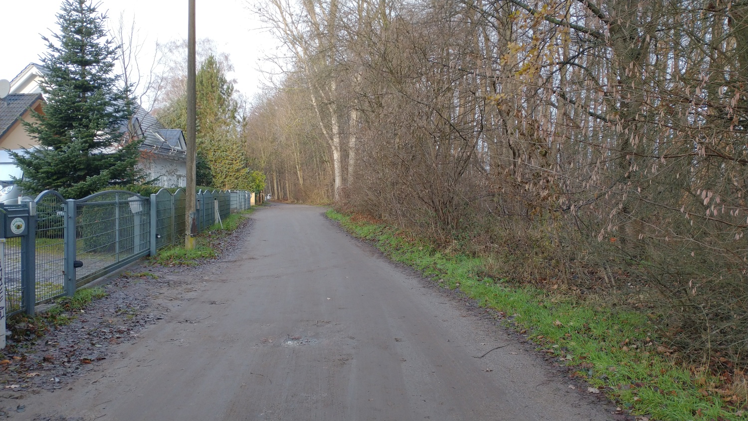 Die Breite der Straße ist zur Zeit unterschiedlich aber nicht größer als 7 m (vor mehreren Jahren neu gepflanzte Straßenbäume). Viele ältere große Bäume stehen noch näher, und diese sollten nicht gefällt werden.